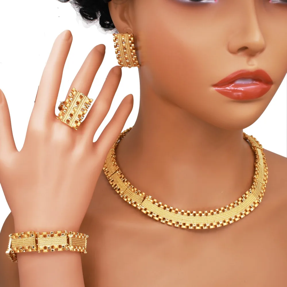 18k Gold Plated High Quality Women Fashion Necklace African Costume Big Chain Jewelry Sets